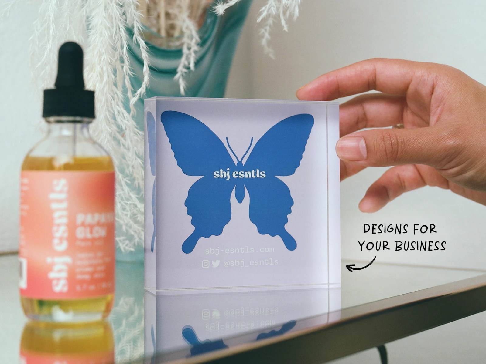 Say bye-bye to boring office desks and bookshelves. Acrylic photo blocks dress up any space – and make great gifts, too.